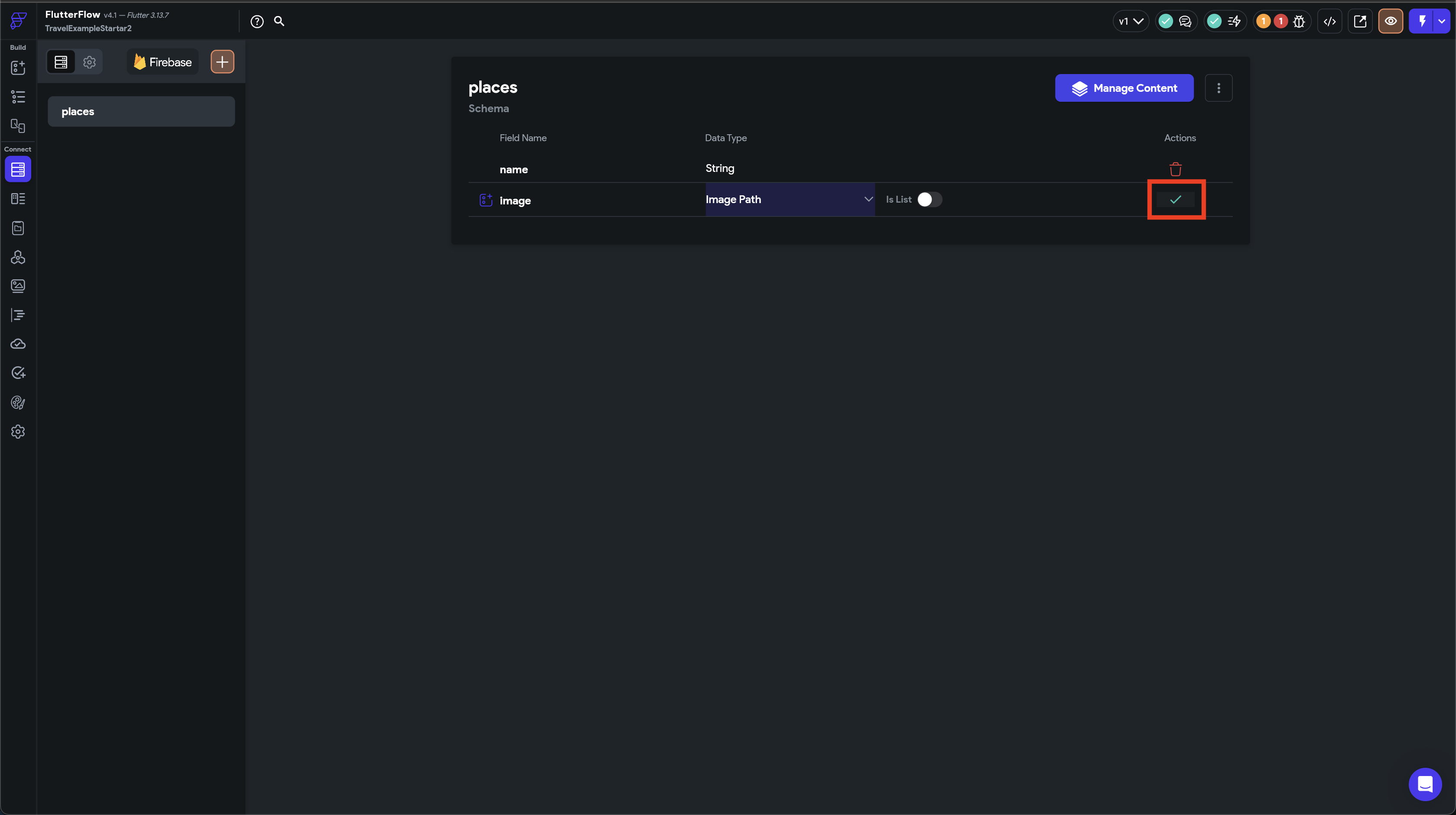 フィールド名とData Typeを選択し、チェックマークで押して、変更を確定します。