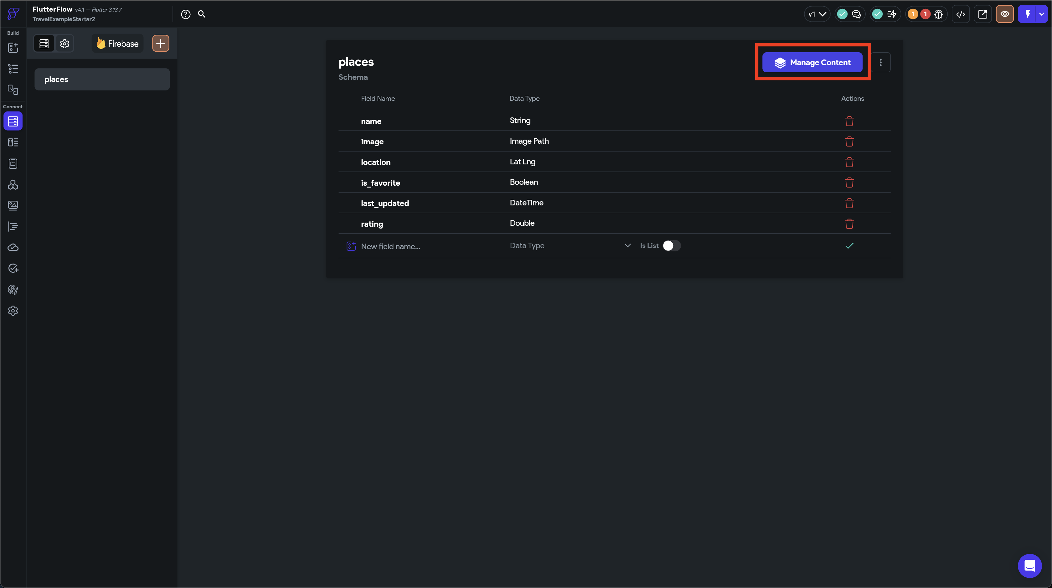 Manage Contentボタンを押して、Firebase Content Manager画面に移動し、コンテンツを追加を行いましょう。
