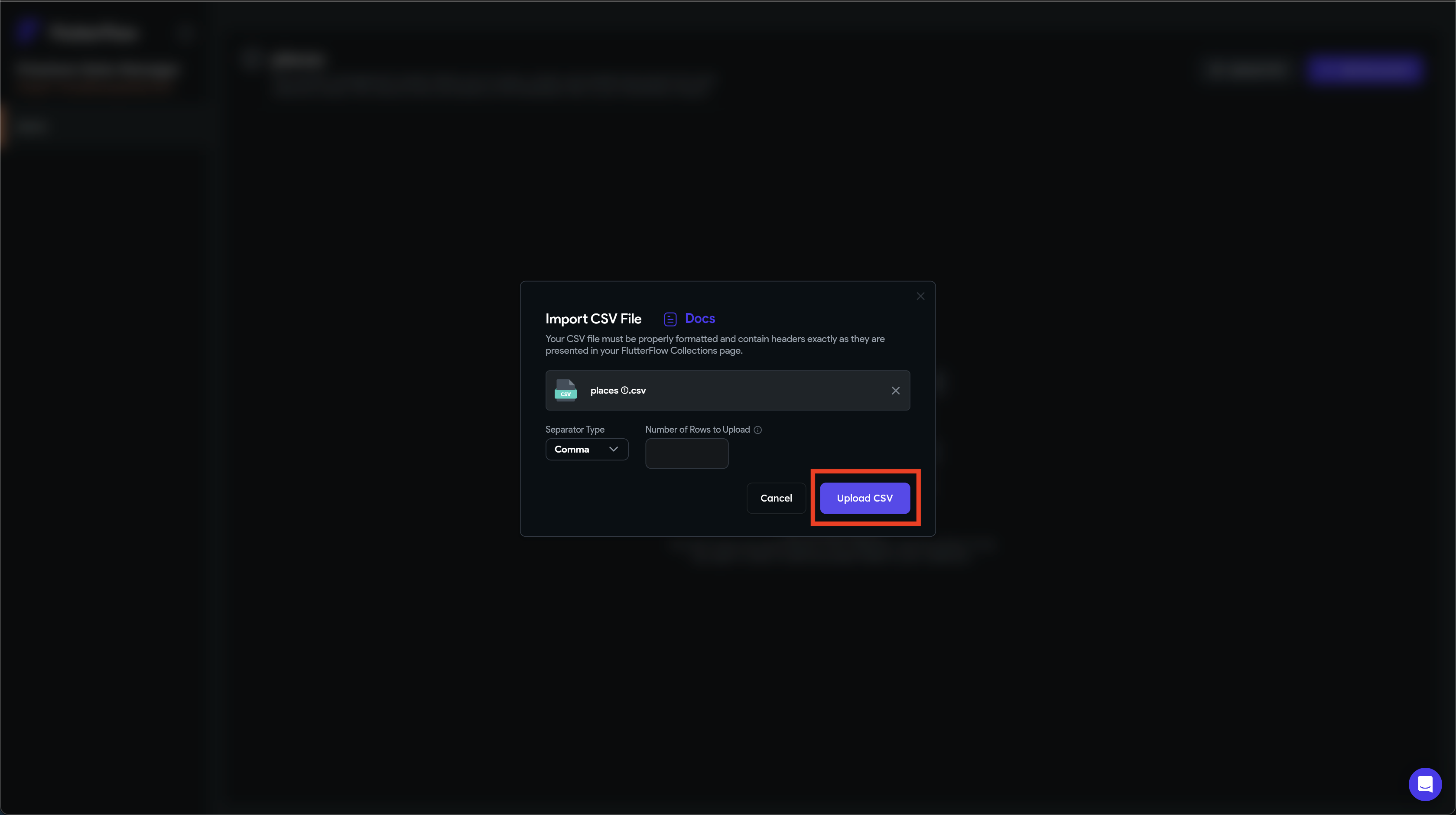 Upload CSVボタンをクリックします。